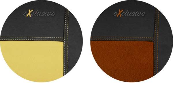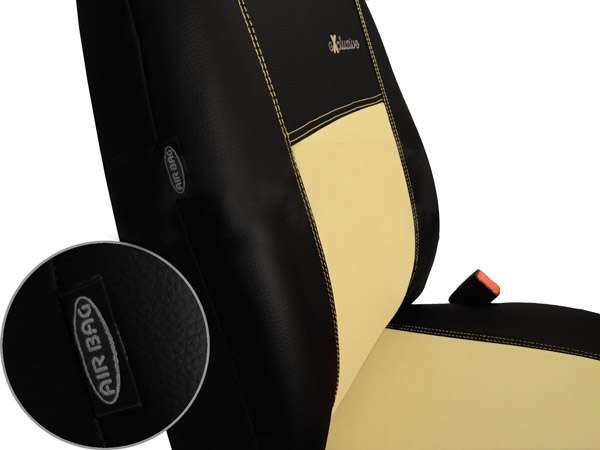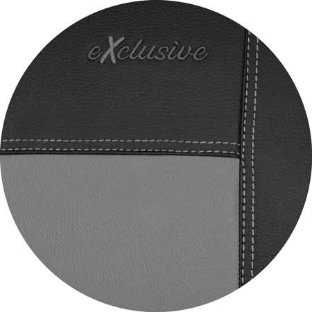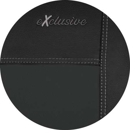 Poťahy sú vyhotovené s dvojitým hrubým šitím, ktoré im dáva jedinečný dizajn a tiež zvyšuje ich odolnosť. Predné poťahy sú ozdobené nápisom EXCLUSIVE ktorý je vytváraný počítačovou technikou.