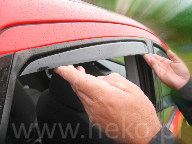 Protiprievanové deflektory sú jedinečným doplnkom výbavy Vášho auta, SUV alebo pick up–u, nie len do sychravého, alebo zimného počasia. Poskytujú prirodzenú cirkuláciu vzduchu vo vnútri vozidla a tak môžete predchádzať zahmlievaniu okien behom dažďa a hmly. Chránia vodiča pred nepríjemnými efektami prúdenia vzduchu do vozidla pri otvorenom okne. Pri použití deflektorov, okna môžu byť pootvorené behom intenzivného dažďa alebo sneženia. Deflektory sú vyrobené z bezpečnostnej plastovej hmoty so zníženou priepustnosťou UV-žiarenia v dymovej farbe. Každý deflektor je vyrábaný s dôrazom na štylistickú líniu vozidla. Vhodné sú taktiež aj pre fajčiarov, keďže počas jazdy môžu mať otvorené okno. Deflektory sú v dymovej farbe.